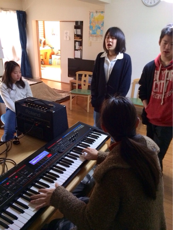 ゴスペルクラブのみなさんがそろわないうちに、練習しています。何の曲でしょうか? TrueVine