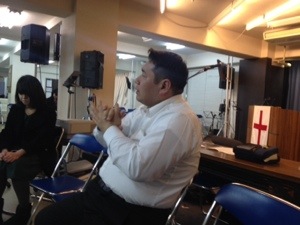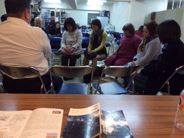 スタッフ会です! 今日は真境名牧師が祈りを導いておられます。