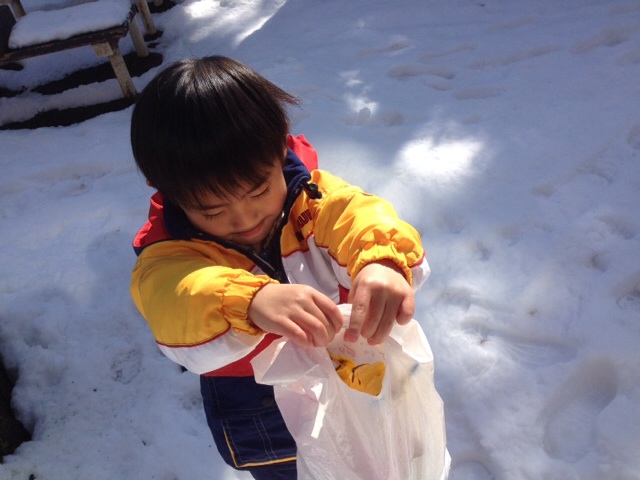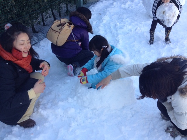 黙々と雪玉を作るJ君。 CSスタッフ ウラノスJOY