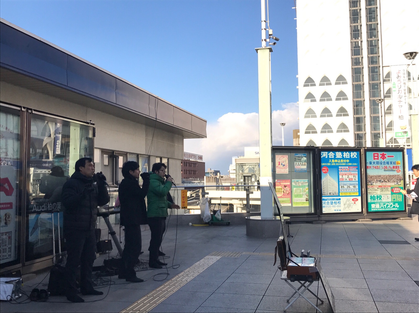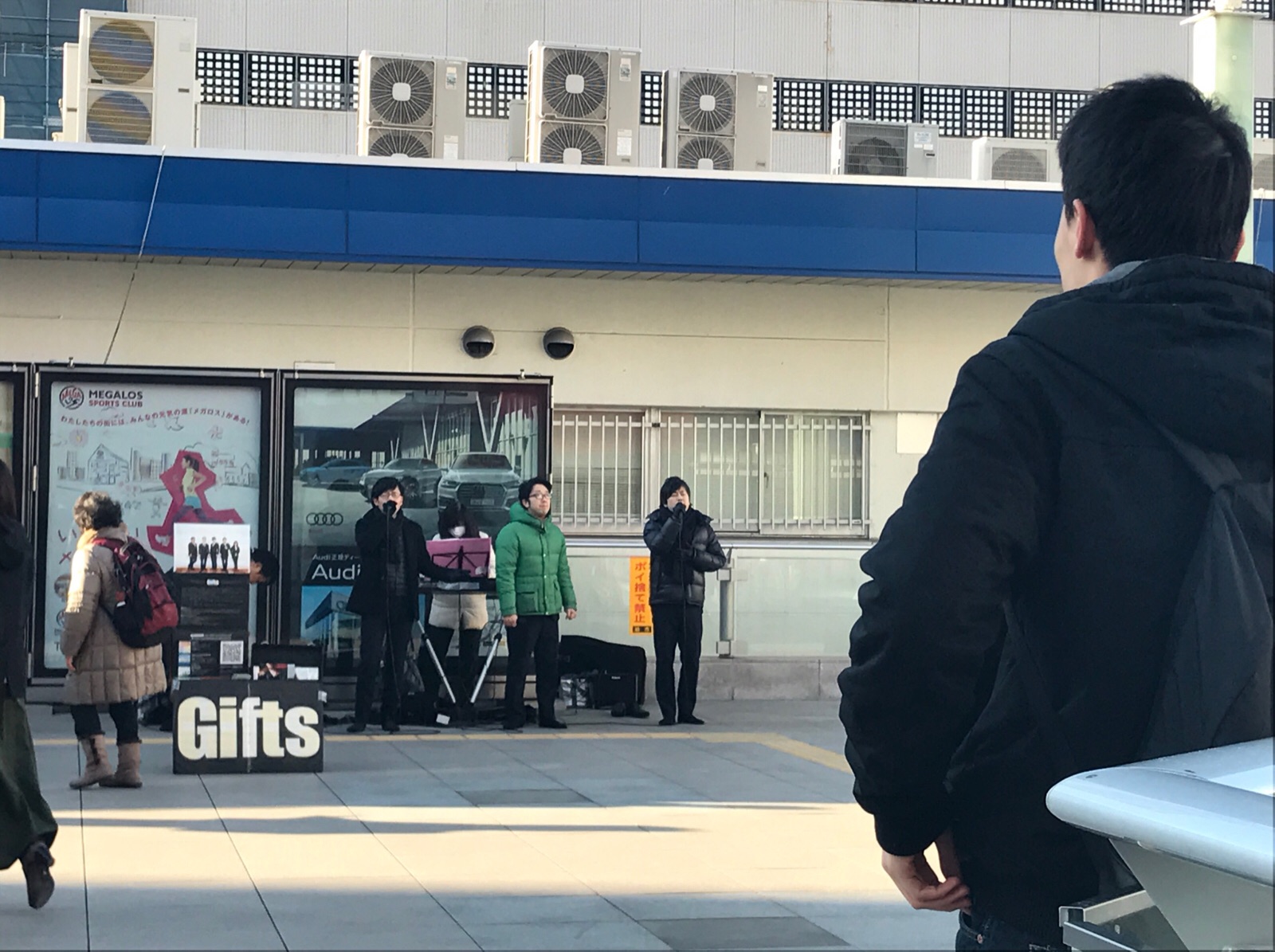 人多し駅ロータリー。ゴスペルに振り返る方々多数有りき。 あゆみ