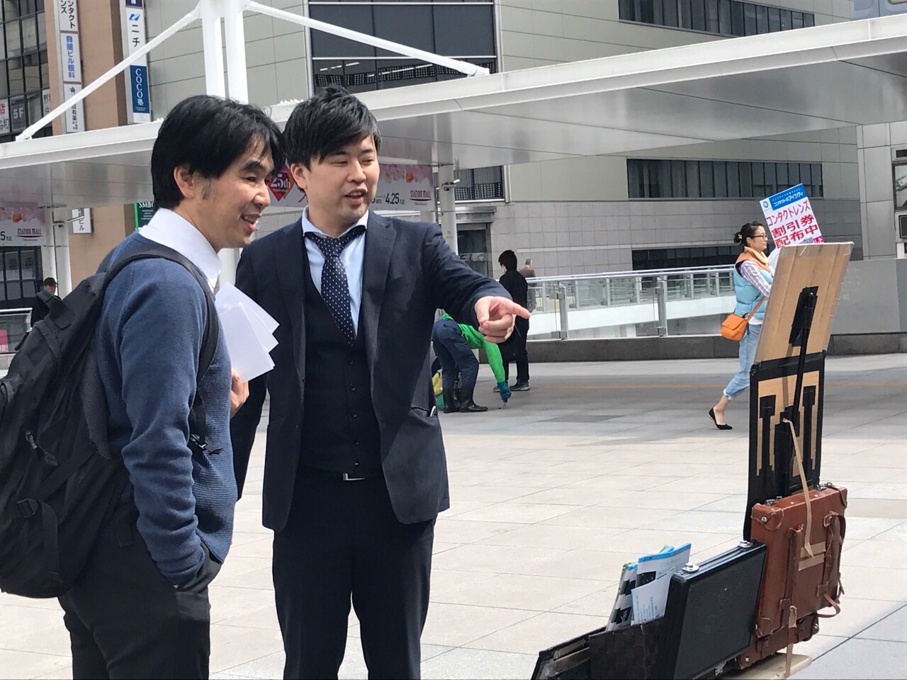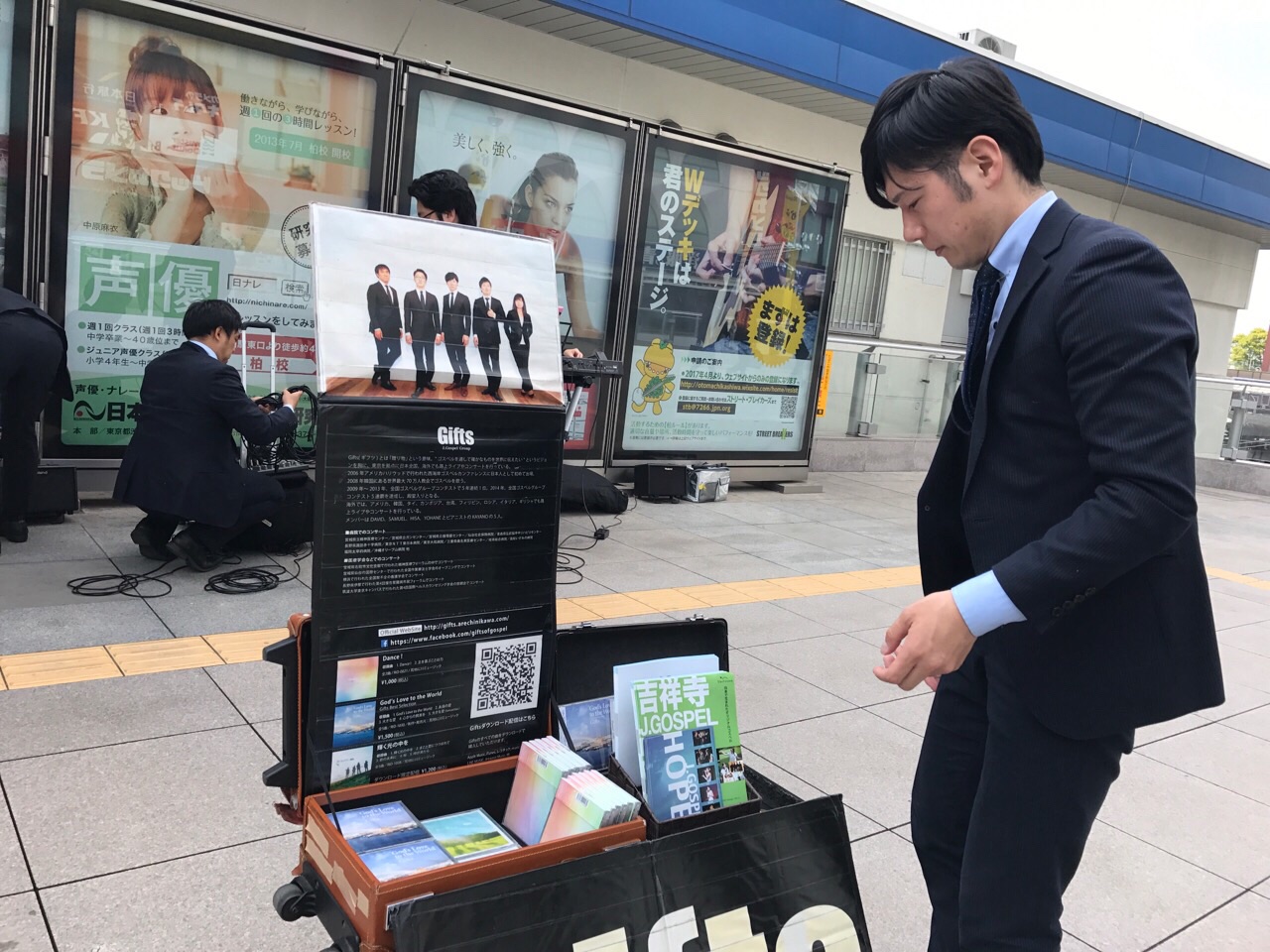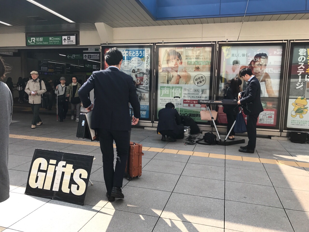 Giftsさん達来られました。路上ライブの準備に入っています。 ハンナ