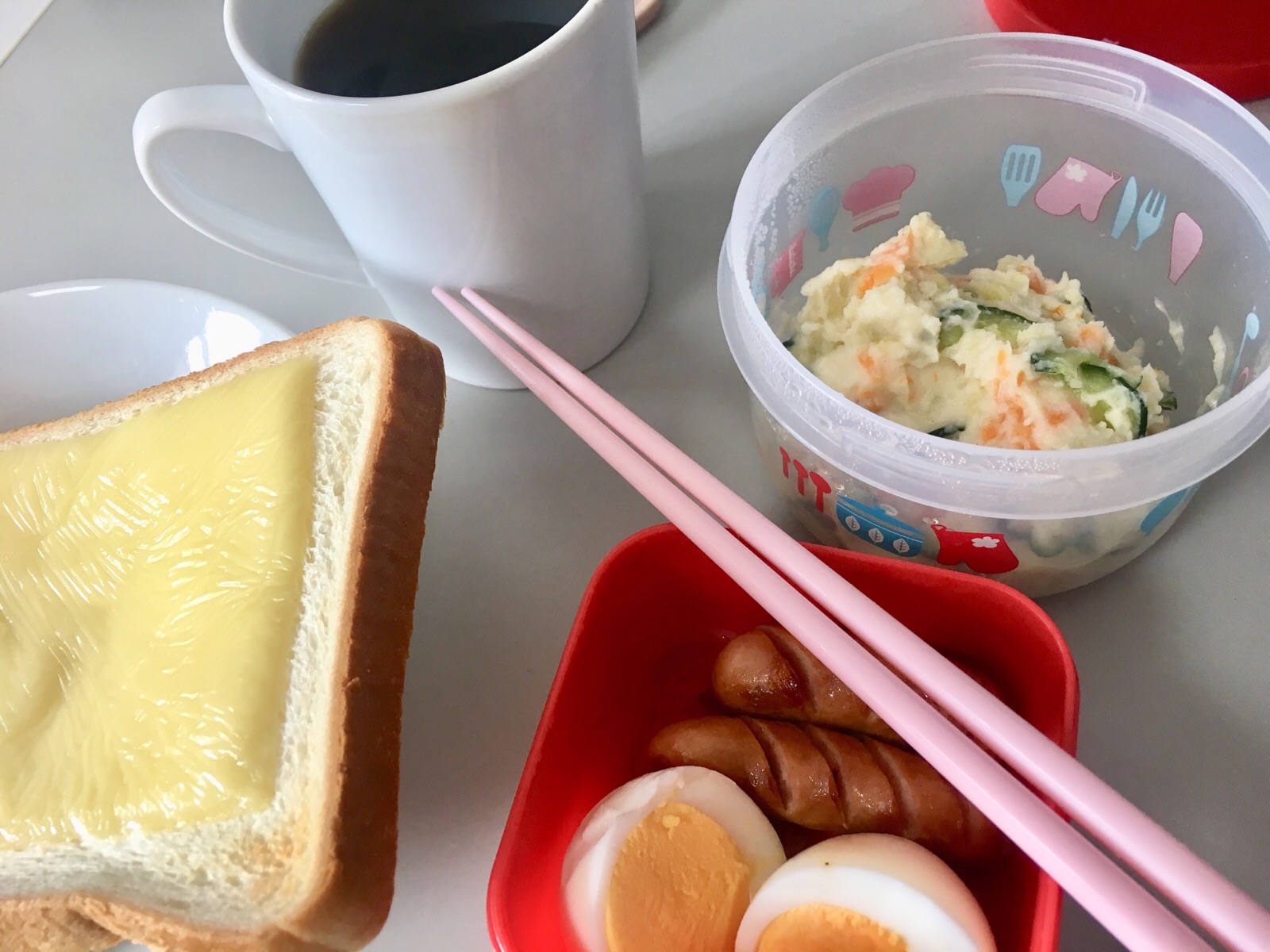 お昼はお弁当です。 昨日作っておいたポテトサラダなどを。 Kayano