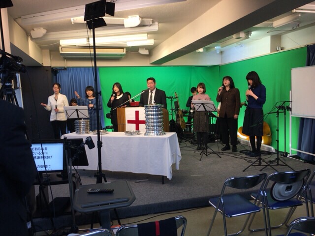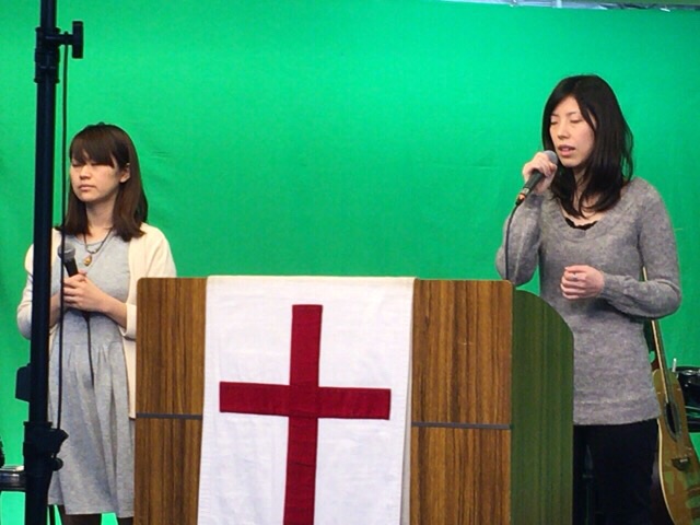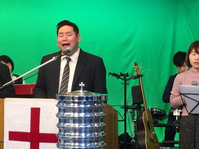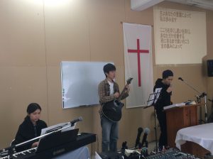 第一礼拝の前半賛美の時です。 真境名さんが賛美をリードされます。