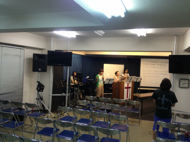 水曜祈祷会、真ん中のmarikoさん率いるチームが賛美です!