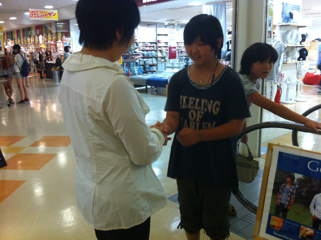 プランナーのヨハネくん、自ら、こころゴスペルのチラシを配りに行っています(^_^)