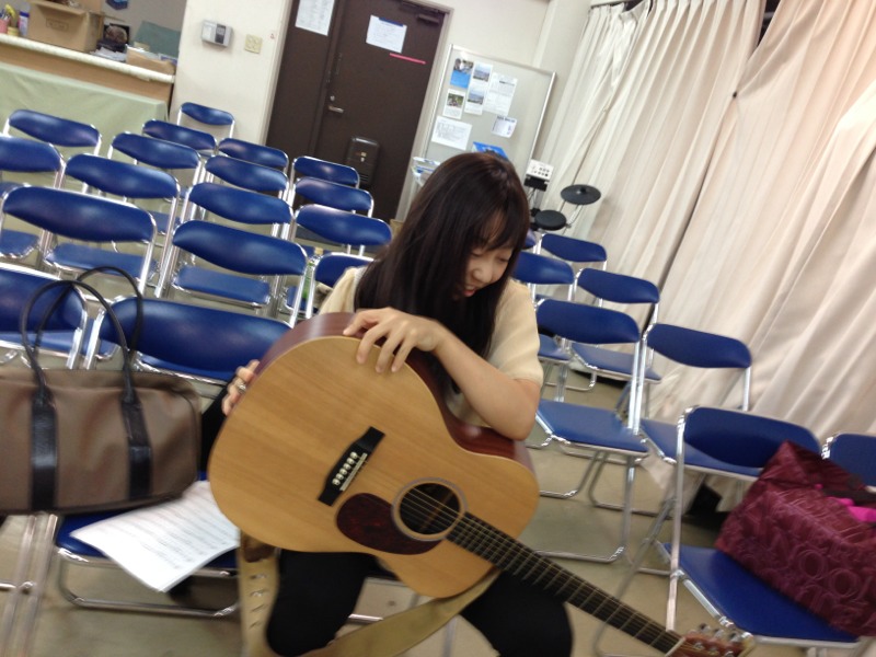 信仰でギターを弾いての賛美リードに立ちますノア輝美ちゃん。
