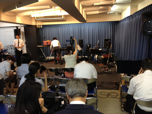 会場準備中!会堂には素敵なBGMが流れてますよ。