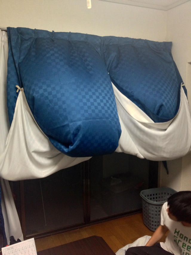 そ、それにしてもスゴイ風! カーテンに襲われています…。