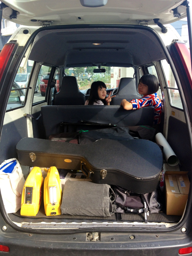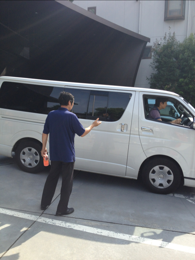 会館闓場20分前。設営車到着。 運転手は、GSのS松牧師。