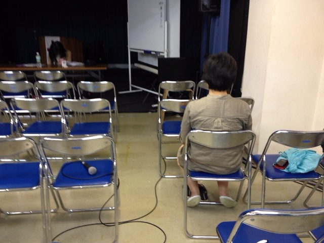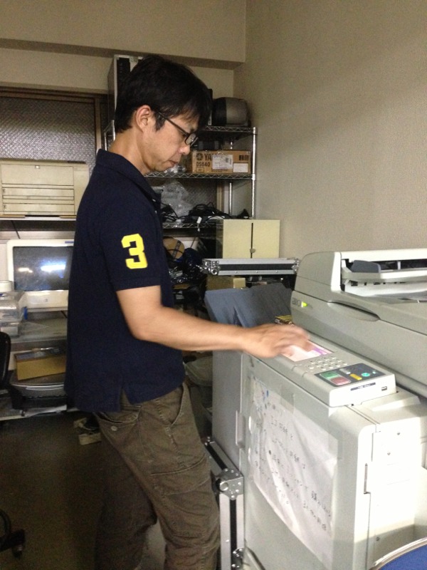 祈祷会後、薄暗い会堂で明日、こころごすぺるコンサートの設営の資料を印刷している樋口伝道師の姿が!