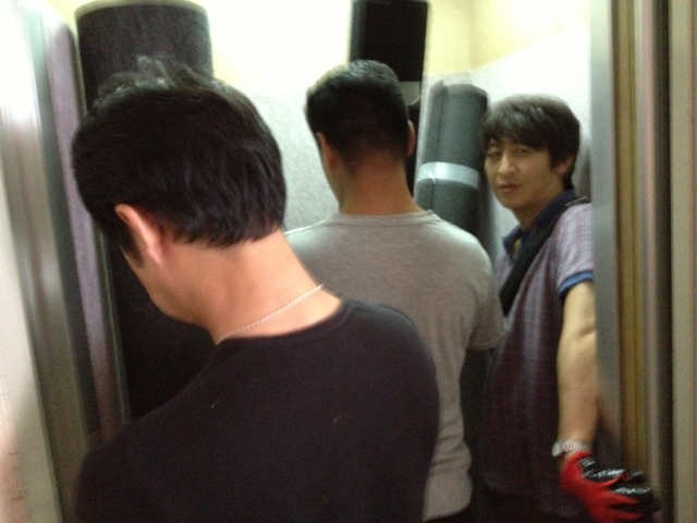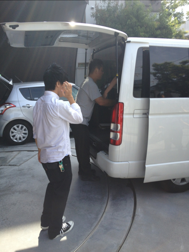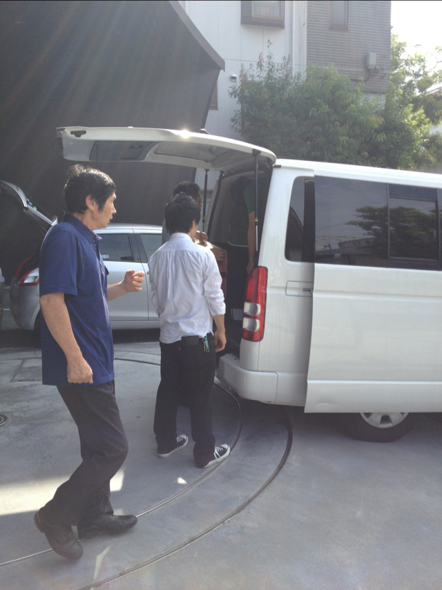 搬入中です。手際がいいです。でもまだ扉はひらきません。