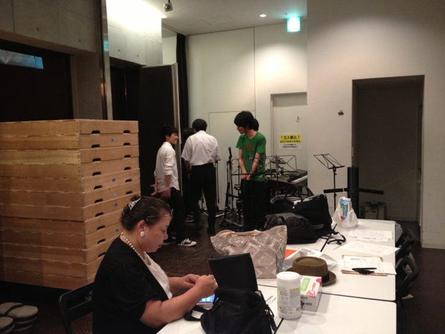 ただいまの会場、裏方の様子!すでにたくさんのスタッフが集まっています。