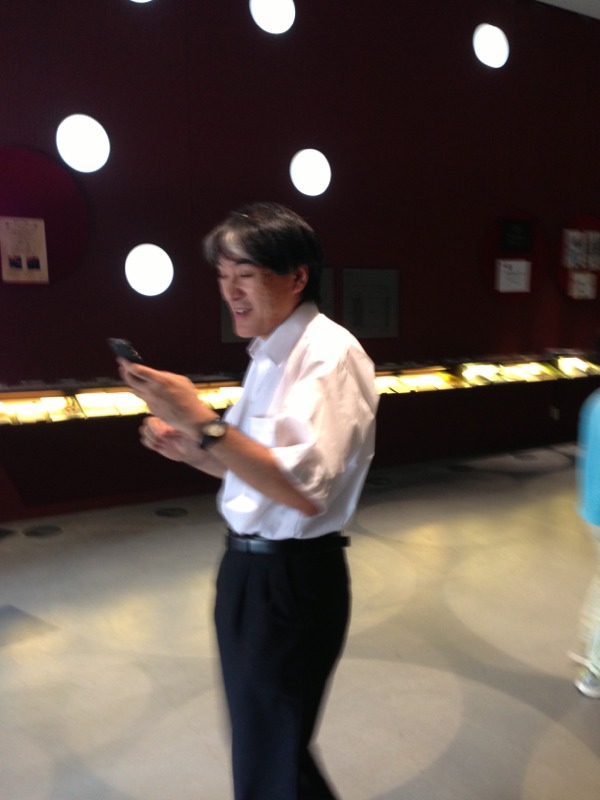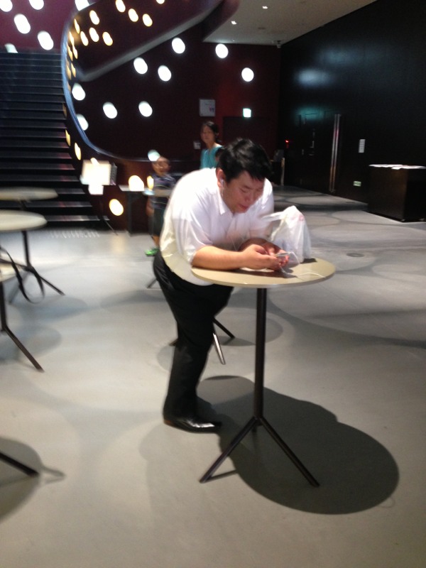 入り口ロビーでマイホームかマイ事務所な雰囲気を出していらっしゃいます。ひっきりなしの電話やメールで電波の届く場所から離れられないのです。入り口でお会いいたしましょう!