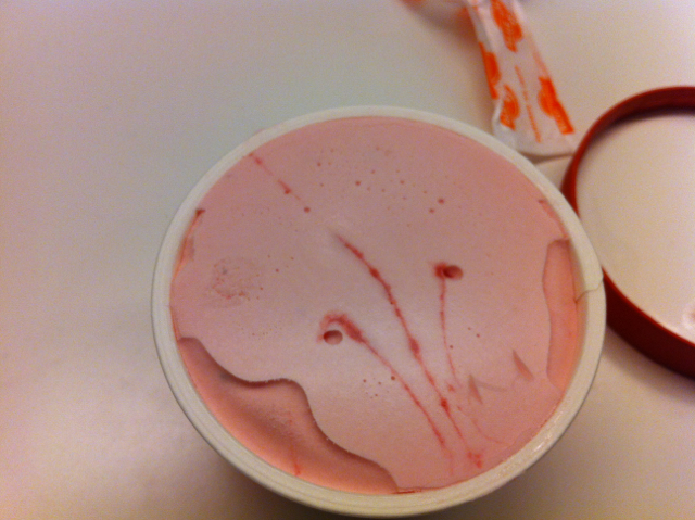 早く食べないとと思い 焦って力いっぱいアイスクリームに突っ込んだら2つに折れてしまいました (>_<)