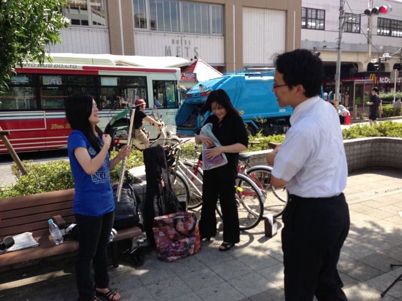 今から、PATOLISが路上ライブ始めます!宣伝チラシ配りもスタートです!木陰にセッティングしています。涼しい風が!