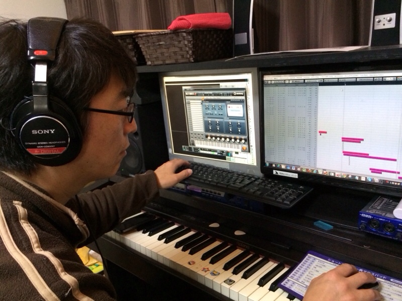 パソコンの前で、寝てたヨセフ三本松さん。早朝、「まずい!出来てない(*_*)」と、仕事遅刻で制作中。