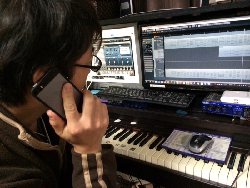 パソコンの前で、寝てたヨセフ三本松さん。早朝、「まずい!出来てない(*_*)」と、仕事遅刻で制作中。