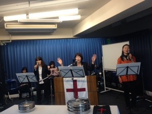 今日の牧師はラスポーザのお二人が牧師賛美です。喜んで賛美しています。