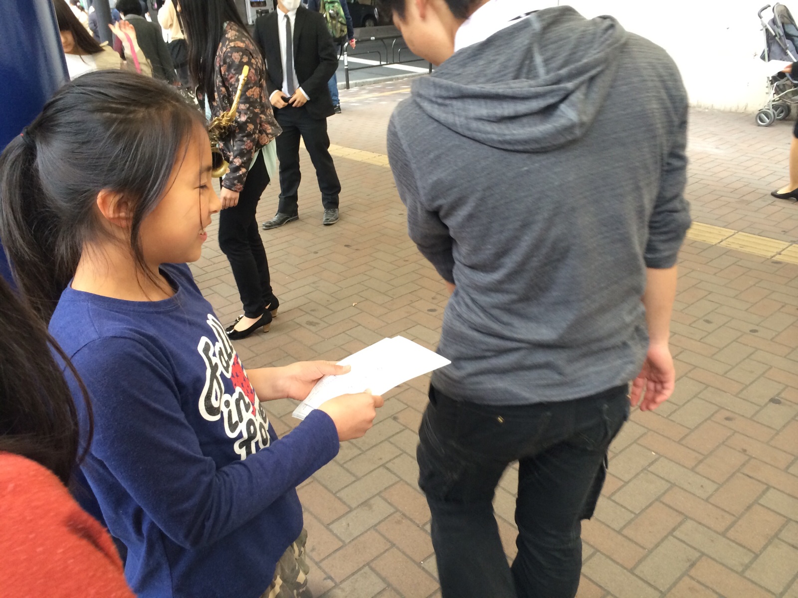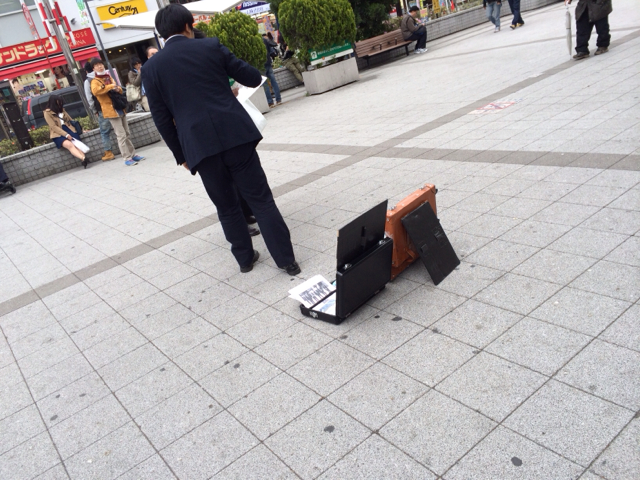 高円寺駅南口では、ちびっ子達ががんばってチラシを配っています!
