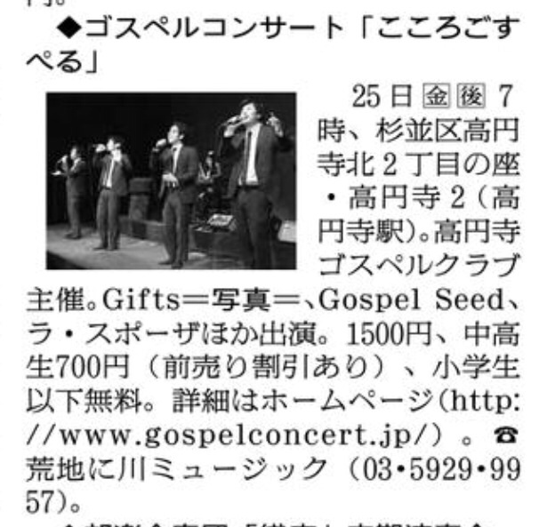 こころごすぺるは、いよいよ今週の金曜日。朝日新聞にも案内が掲載されました。