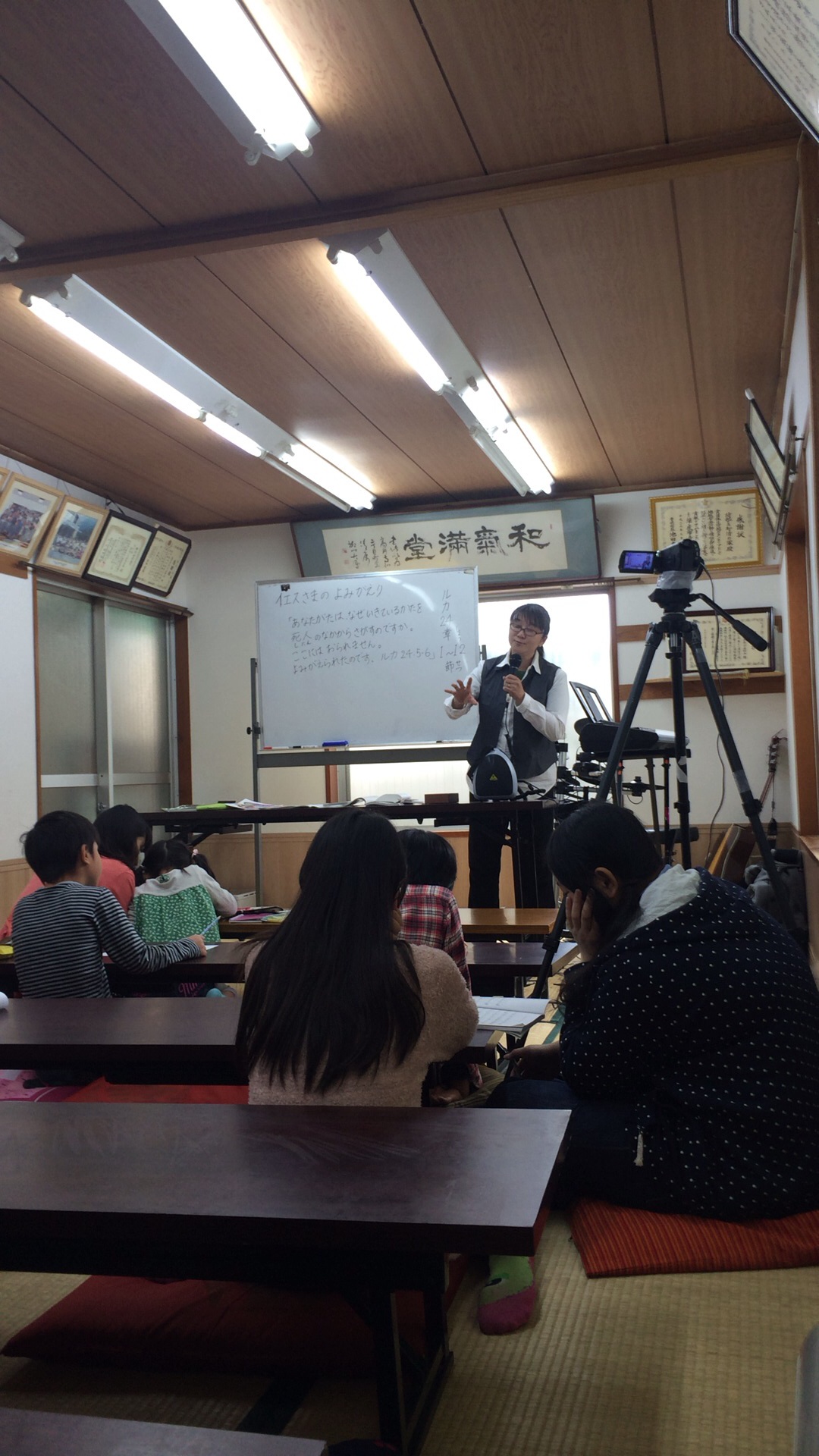 子供礼拝始まる前。 にぎやかです。午後はチラシ配布に活躍します。
