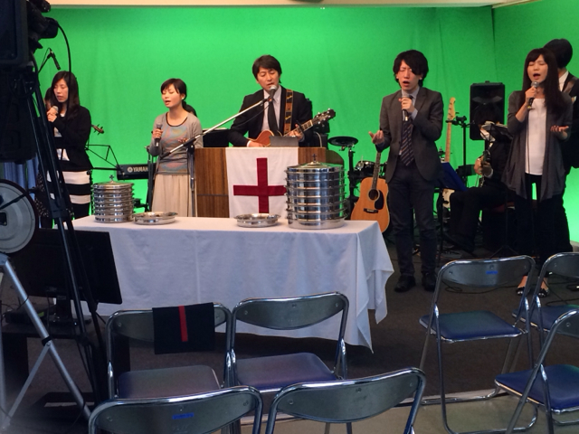 賛美リーダーは三本松牧師です。 こころごすぺるに出演するゴスペルシードのリーダーです。