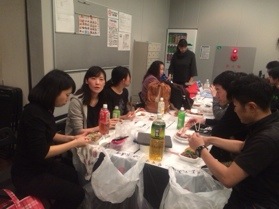 真剣な様子。 その横で真剣に弁当を開ける人も。