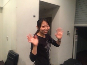 PAフォローの益川さん。2人の肩もみ中。こんな所で油を売っていて大丈夫?