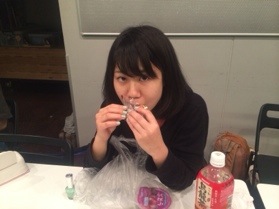 映像スタッフの唯ちゃん、本番付設営スタッフの愛ちゃん。 糖分補給中。