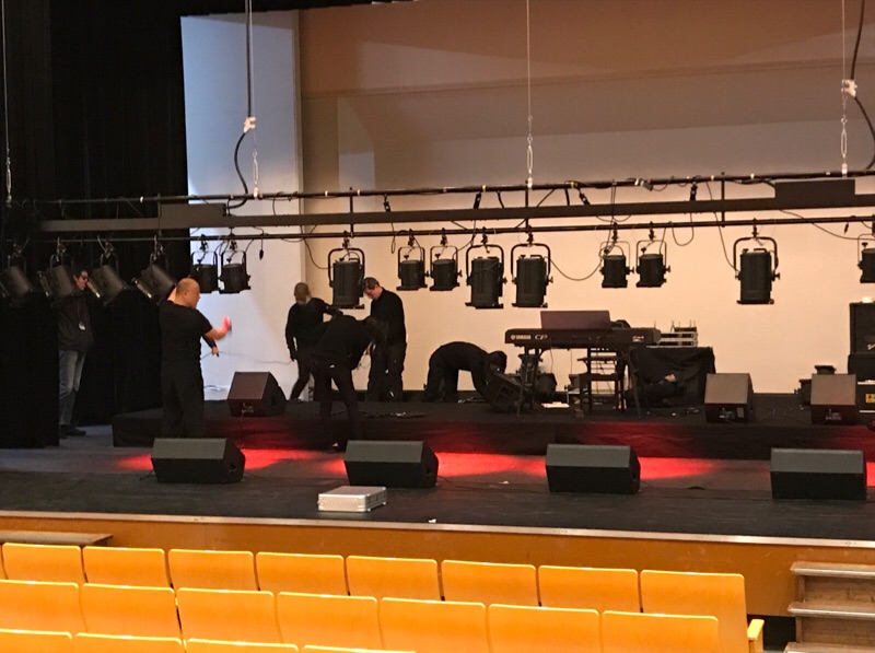 PAのセッティング、ヒロくん、頑張ってます! サムくん、ドラムをセッティングされてました!