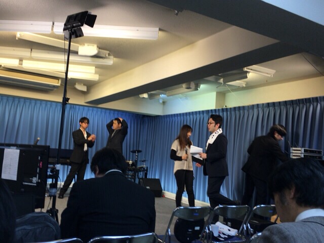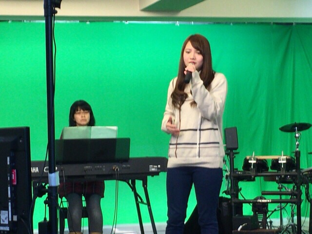 サウンドチェックです。 今、ジョイちゃんがやっています。 森田はるみさんの伴奏です。