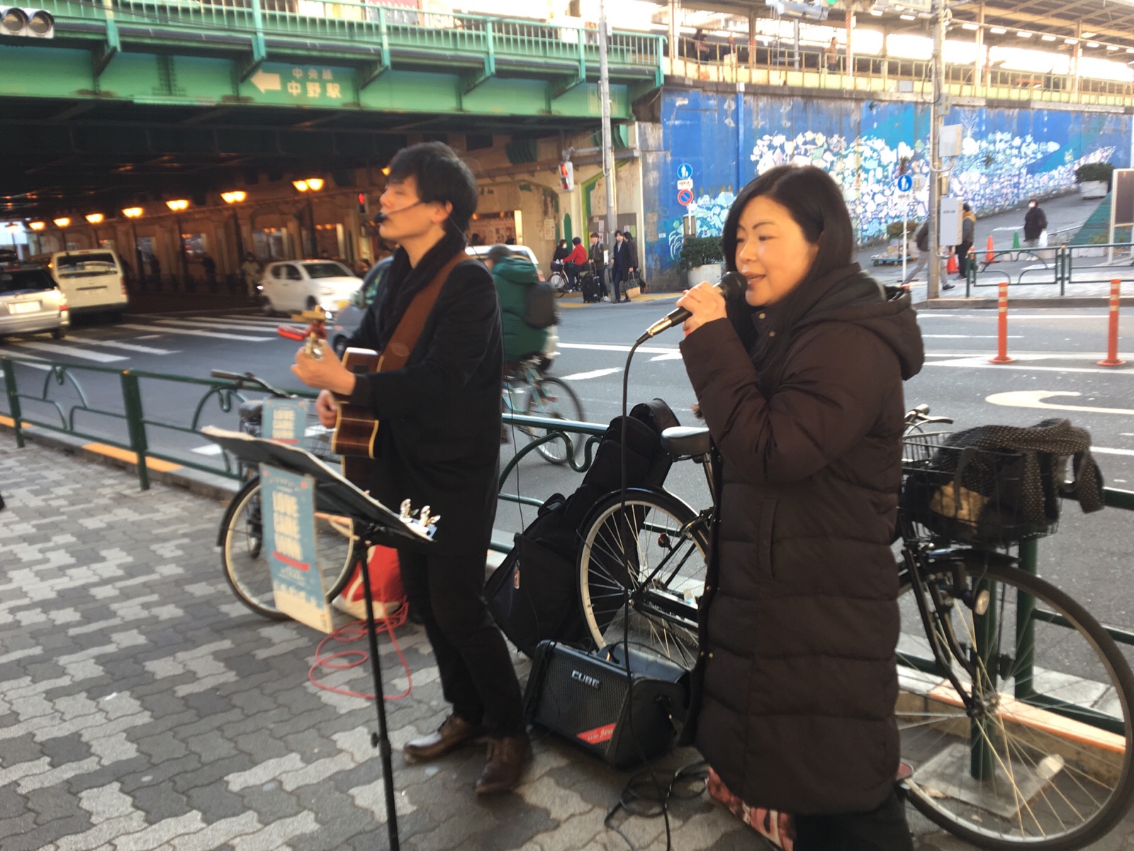 中野駅前で、宣伝路上ライブが行われています。パトリスの皆様!