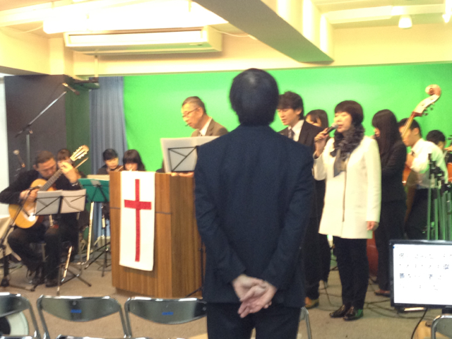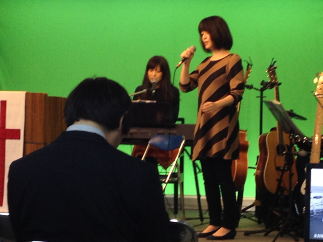 永藤さんが沖縄エルサレム教会の賛美をリードしています。 沖縄