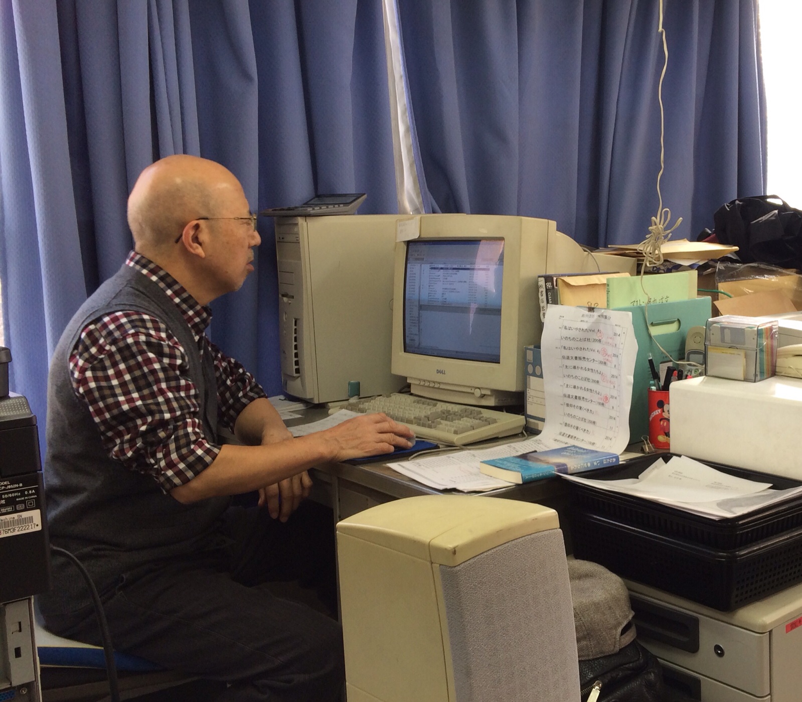 事務所に来られて、すぐに販売のメールチェックをされてるモーセ鈴木さんです。 ミカエルK.Y