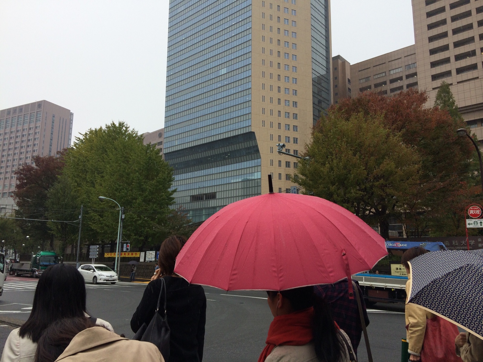 事務所のある文京区は、雨。 傘さしてる人とさしてない人、半々。 私は忘れました。感謝します。 ミカエルK.Y