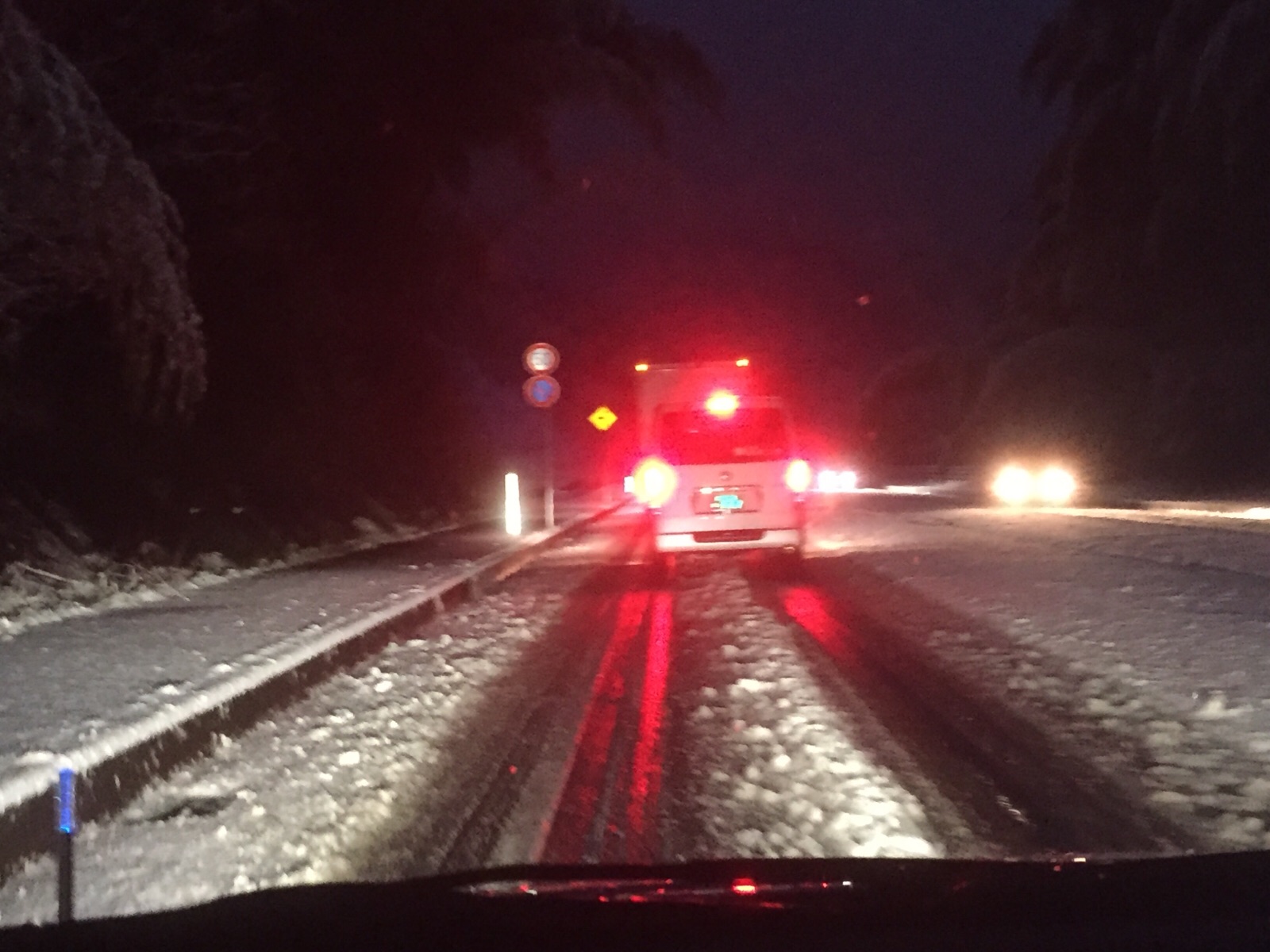 雪です‼️ ゆっくり、ゆっくり……進んでいます。 所々、警察の方が、立っておられます。