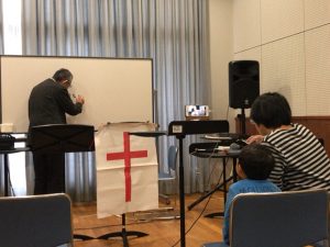秋元さんが賛美を導かれます。