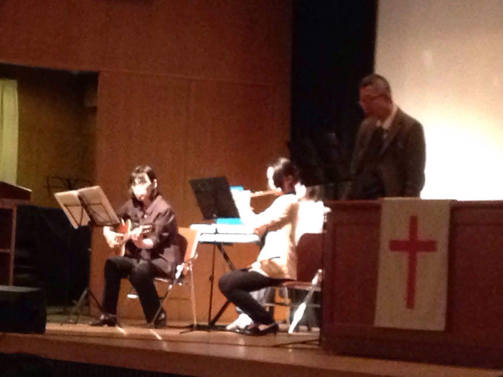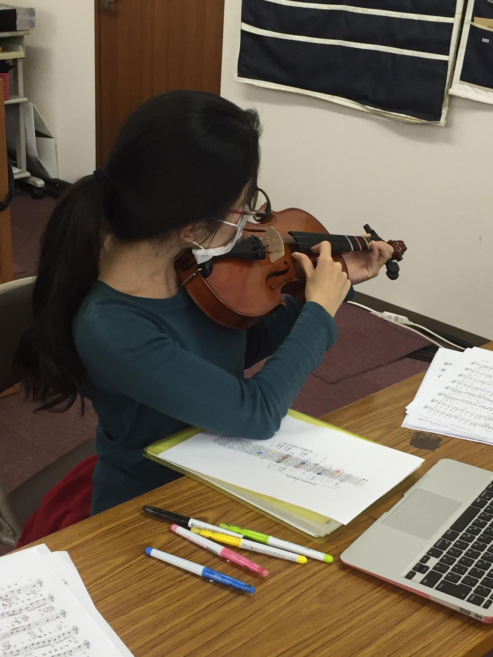 親友のめぐちゃん 明日の長崎カリスマ聖会に向けてヴァイオリンの調整&練習中ですd(^_^o)