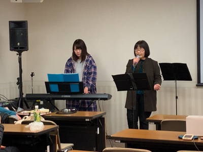 セミナーが終わって聖会準備です。ゴスペルグループGiftsが音合わせします。
