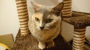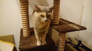 アンビちゃんは、しっかり、 キャットタワーの一番上を、 陣取っています。