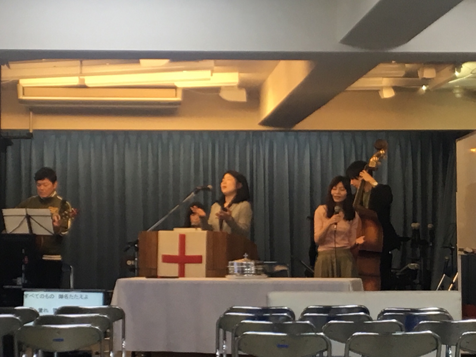 土曜礼拝が行われています。山中さんが後半賛美リードです♪