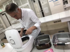 カップを並べるPaulさん。