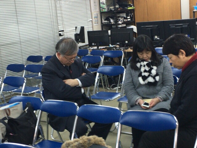 それぞれの担当のところで祈り、ミーティングです。 こちらは受付の皆さん。