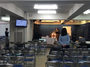 白馬クリスチャンフィルムフェスティバルで1位の作品を見ています。