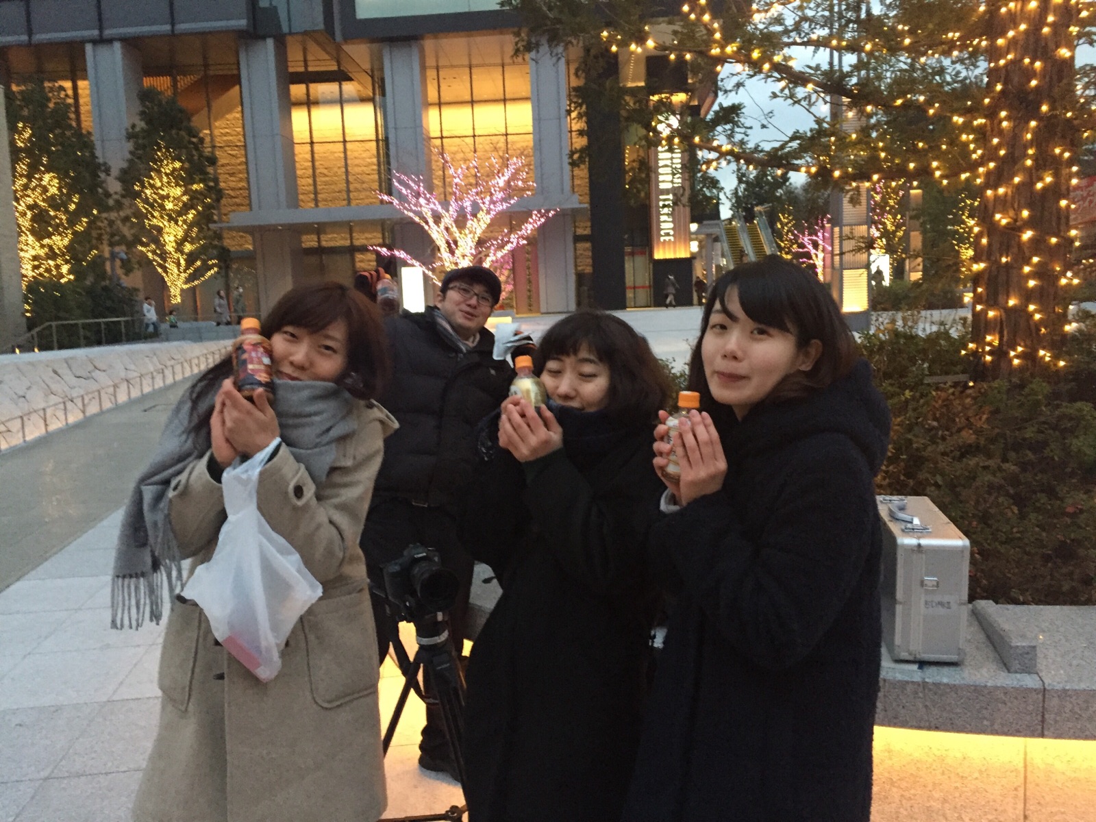 えりかちゃん、みなさんのために飲み物を買ってくれました。