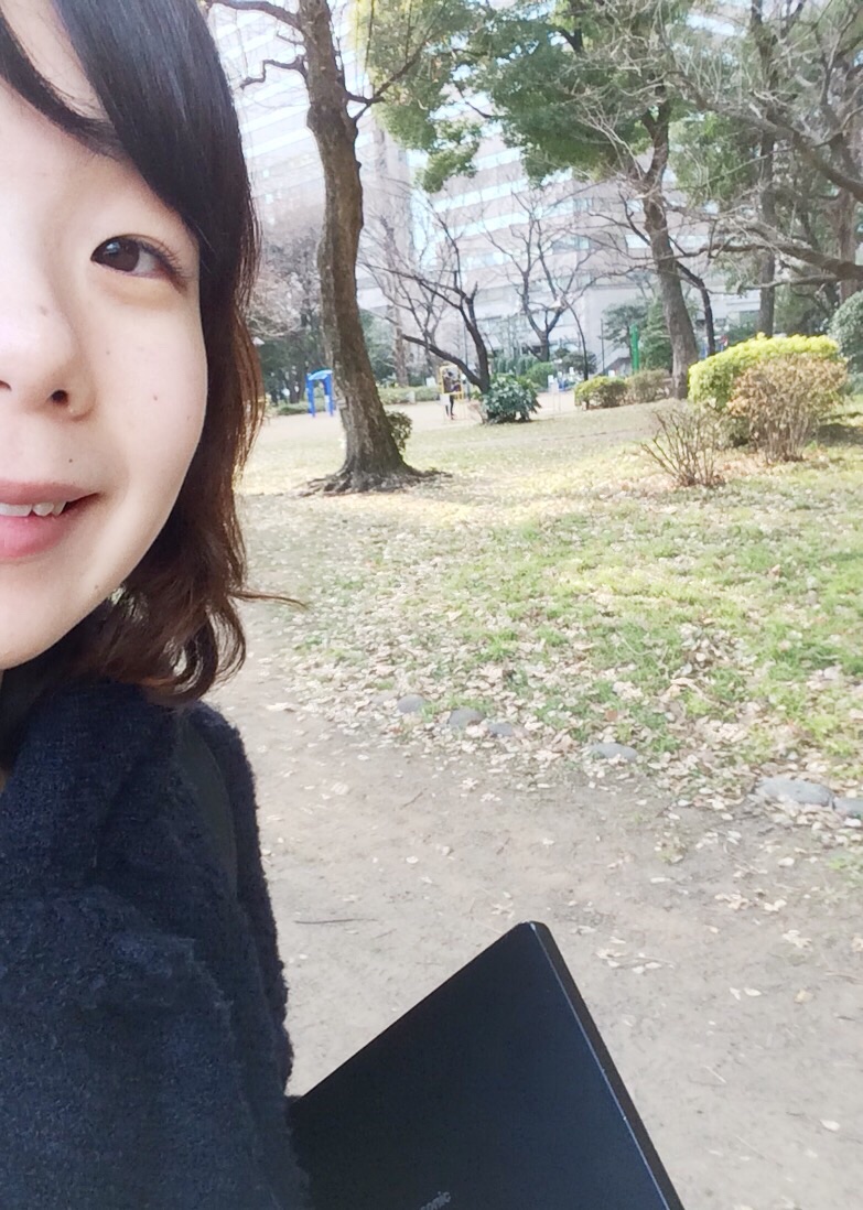 日比谷公園での撮影中! テニスコートがありました! わたしも以前テニスを習ってたけど、ヘルニアになって辞めちゃったことをふと思い出す^o^ えりか
