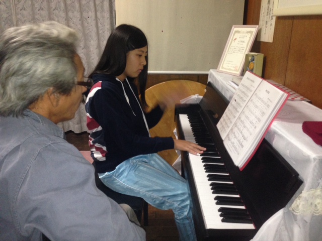 カリスマ聖会で初めて特別賛美の奏楽の奉仕をするSちゃん。 リーダーのお父さんと猛特訓! のはずが…いつの間にか、お父さんの猛特訓に! 「ここ合ってる?ここは?」音程のチェックをしてもらってました。 四日市