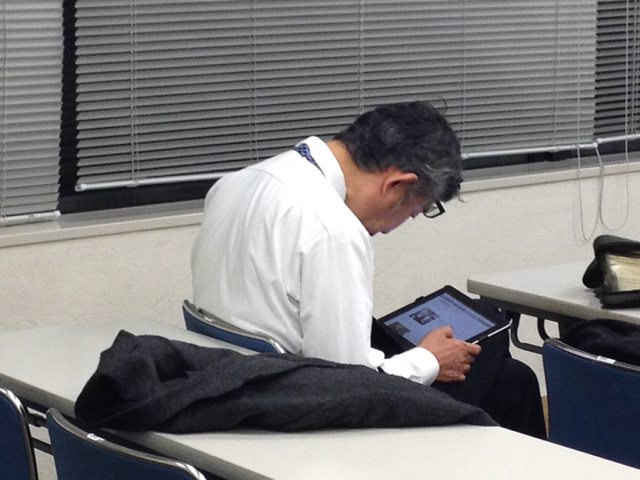 セミナーは、祝福のうちに終わりました。秋元牧師、休憩中にブログチェックされています。