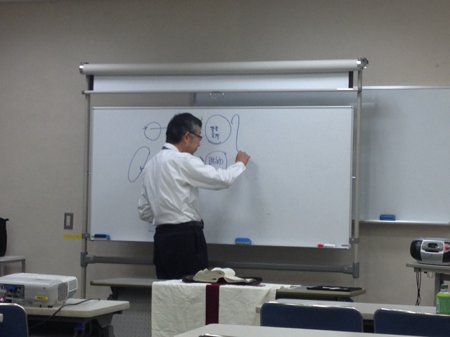 賛美の後、秋元牧師の預言のセミナーです。へブル人への手紙5章14節から。 名古屋