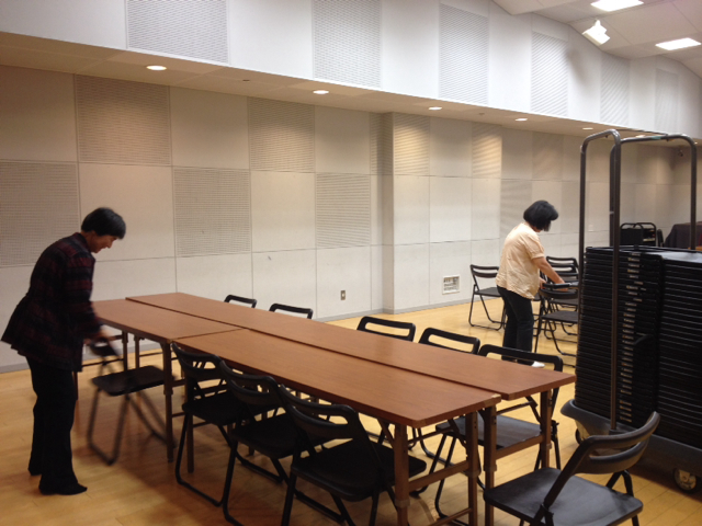名古屋教会の方々が、聖会会場の準備をされています。 四日市